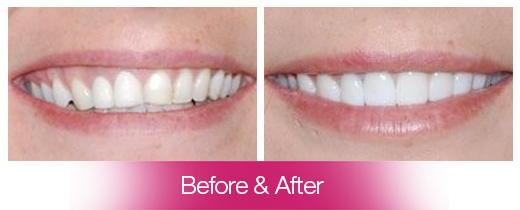 Cosmetic veneers on two anterior teeth were needed to correct broken tooth caused by trauma.