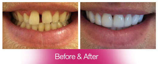Eight veneers on upper anterior teeth were placed to correct for spacing when orthodontics was not an option.