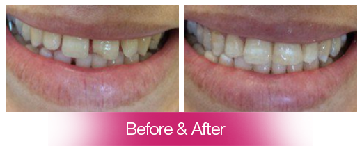 Six upper anterior teeth were bonded with translucent composite to close gap.